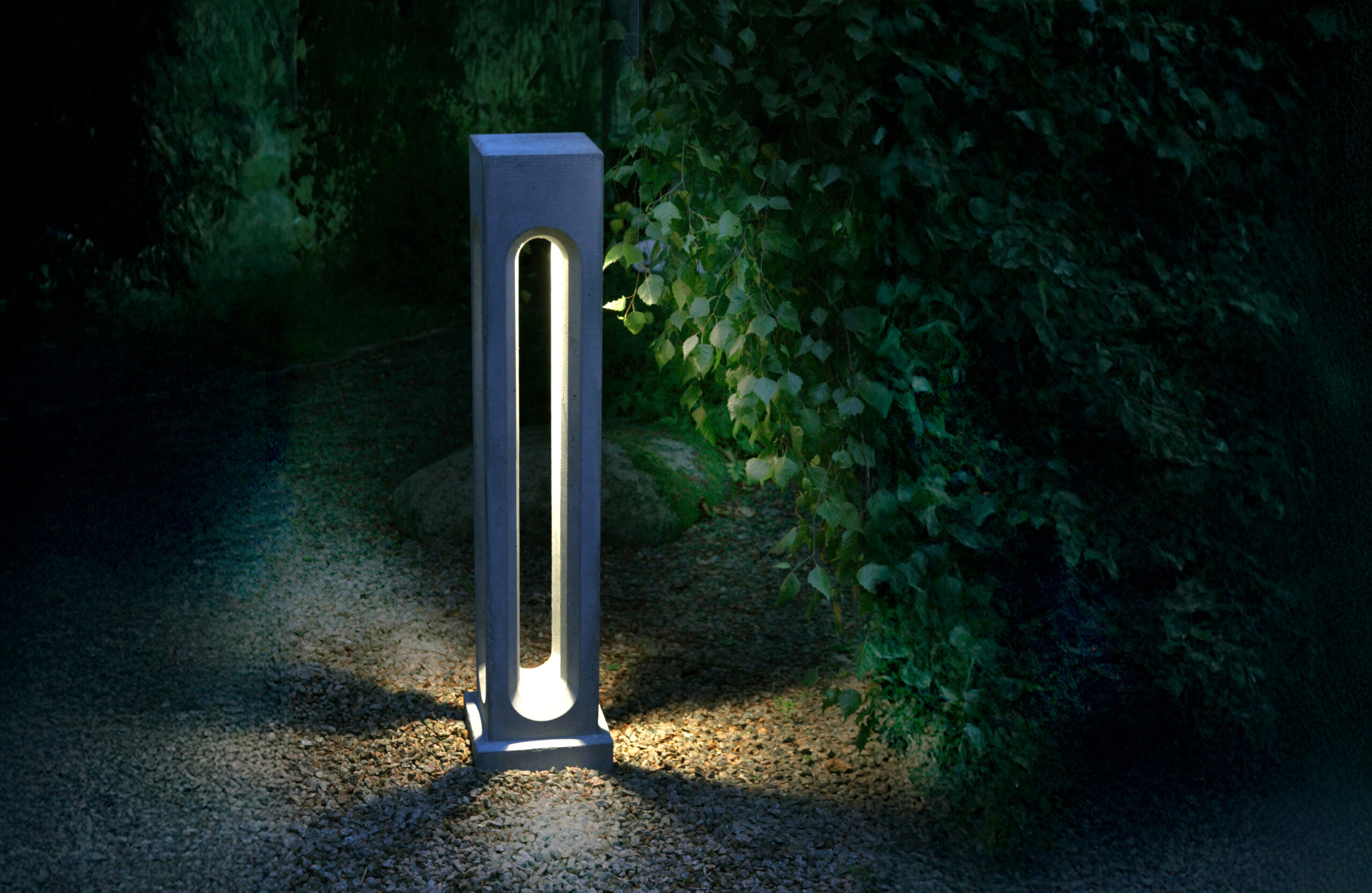 Stable Glow är en ljuspollare med fyra smala pelare. Den produceras med fiberarmerad och klimatförbättrad betong med biokol. Stable Glow kan monteras med olika armaturer för olika spridningseffekt och ljusstyrka. Armatur kan levereras som en separat produkt som monteras infällt i måttanpassad öppning. Kablage dras i dolt kabelrör. Standardmått på öppning för armatur är 70 mm. Specialanpassning med minskat mått kan göras vid behov. Vi samarbetar med Markbelysning Skandinavien AB för de som önskar stöd med ljusdesign och helhetslösningar för 12 volt-system.
